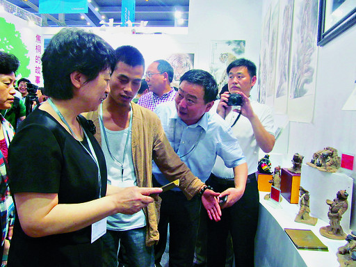 趙素萍對我市展出的泥塑、泥咕咕、裸眼3D產(chǎn)品、動漫短片等表現(xiàn)出濃厚的興趣,希望參展企業(yè)在宣傳推介文化產(chǎn)品的同時,積極學習外地在文化產(chǎn)業(yè)發(fā)展方面的經(jīng)驗和做法,不斷完善提升,為我市乃至全省文化產(chǎn)業(yè)的大發(fā)展大繁榮提供強有力的支持。在河南三陽光電有限公司展臺處,趙素萍觀看了裸眼3D產(chǎn)品展示,認為該項目科技含量高、市場潛力大,鼓勵企業(yè)加快開發(fā)更舒適、更逼真的產(chǎn)品,早日實現(xiàn)產(chǎn)品進入家庭的目標。在魂子泥塑藝術有限公司展臺處,趙素萍認真察看該公司的展品,并與公司負責人、河南民間工藝美術大師宋慶春親切交談,鼓勵他進一步將傳統(tǒng)文化與現(xiàn)代創(chuàng)意相融合,做出更多更好的工藝品。趙素萍還觀看了市華寶動漫有限公司出品的動漫短片《小鶴仙與大水怪》,對該公司的創(chuàng)意及制作水平給予充分肯定。