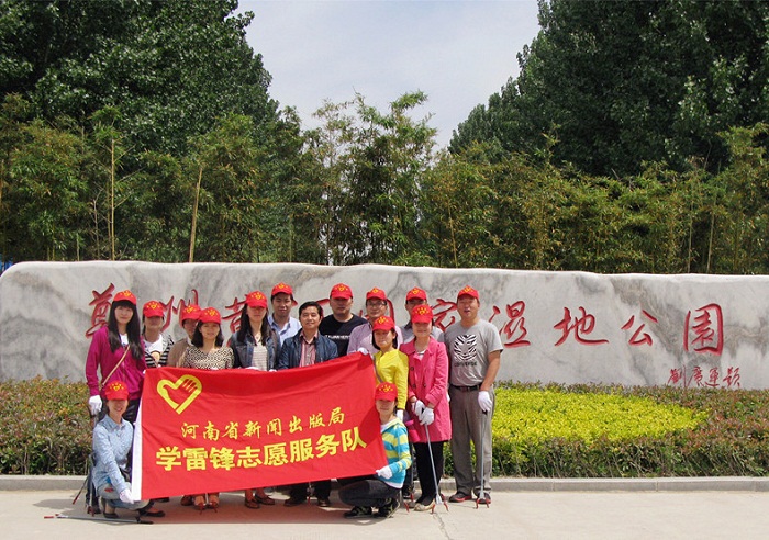 為大力踐行社會主義核心價值觀,引導(dǎo)局直系統(tǒng)黨員干部帶頭“做文明人、辦文明事”,五一小長假后的第一天,省新聞出版局15名青年志愿者在局直機關(guān)黨委專職副書記張培明同志的帶領(lǐng)下,一起到黃河濕地公園開展了“傳承五四薪火•志愿潔凈家園”清撿垃圾活動。經(jīng)和有關(guān)工作人員溝通,我們將活動的重點區(qū)域定在平日清潔人員疏于打掃的大道附近的草叢樹林里。志愿者們領(lǐng)到工具后,兩人一組,三人一隊,發(fā)揚不怕臟、不怕累的精神,默契配合,清理的垃圾裝滿了數(shù)十個蛇皮袋。