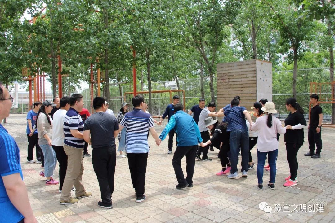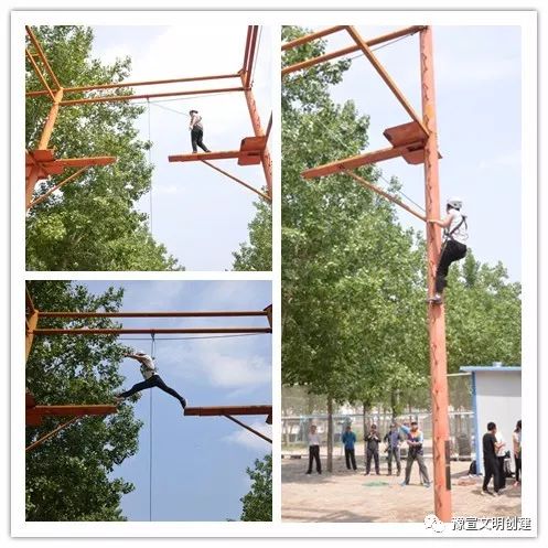從一開(kāi)始的團(tuán)隊(duì)破冰,到考驗(yàn)智慧和勇氣的互動(dòng)游戲,大家相互配合、彼此信任,英姿颯爽、奮力拼搏。在“高空斷橋”項(xiàng)目中,隊(duì)員們爬上8米高空,躍過(guò)斷橋后折回,再?gòu)目罩薪德?。?dāng)有隊(duì)員面對(duì)高空遲疑害怕時(shí),其他隊(duì)員都紛紛加油鼓勁,耐心等待,傳遞著集體溫暖的力量,最終所有隊(duì)員都順利完成了挑戰(zhàn)。